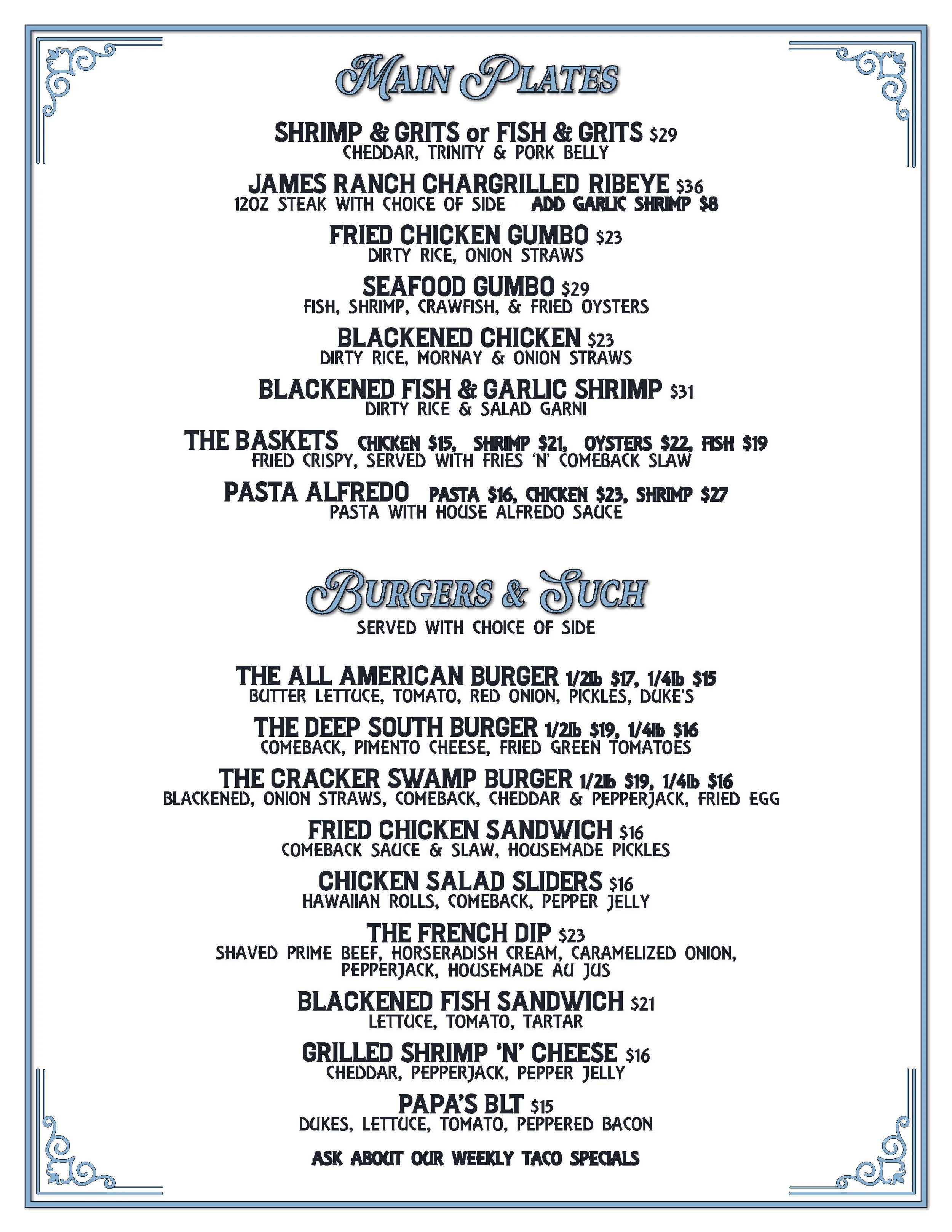 Dinner Menu